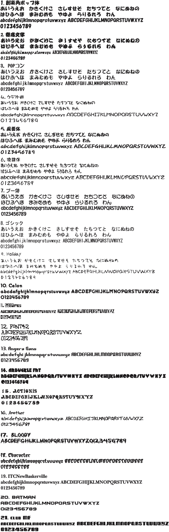 日本語英語兼用フォント、英語専用フォントなどありますのでご注意ください